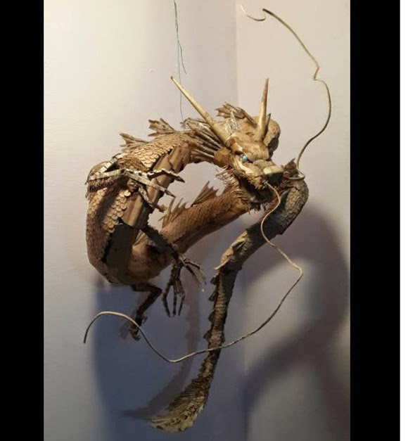 Meet Kai-xiang Xhong, the Tony Stark (sans riches) of cardboard art. Some people might laugh at the phrase “cardboard art,” but this man’s sculptures are so stunning that it’s hard to believe they are made of the same stuff your Amazon purchases arrive in. Take, for instance, the life-size Iron Man suit shown above. (Did we mention it’s wearable? There is a person in that suit, walking around and bending parts without it falling to pieces!)